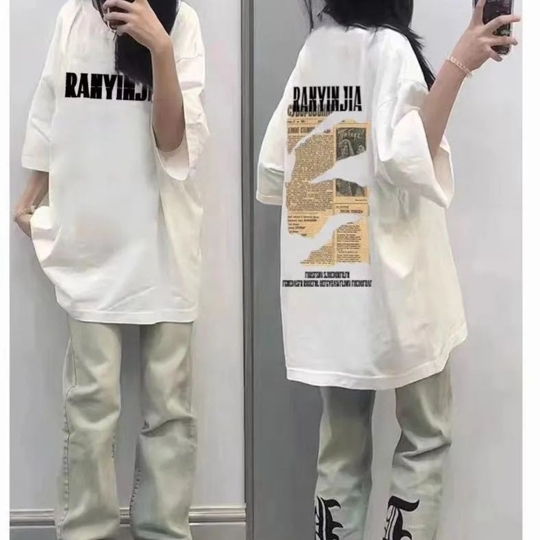 骨格ストレート向け重ね書きロゴ入りオーバーサイズTシャツの着こなし術