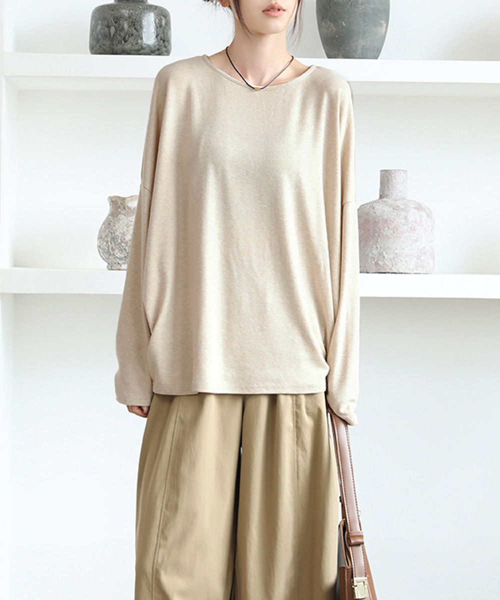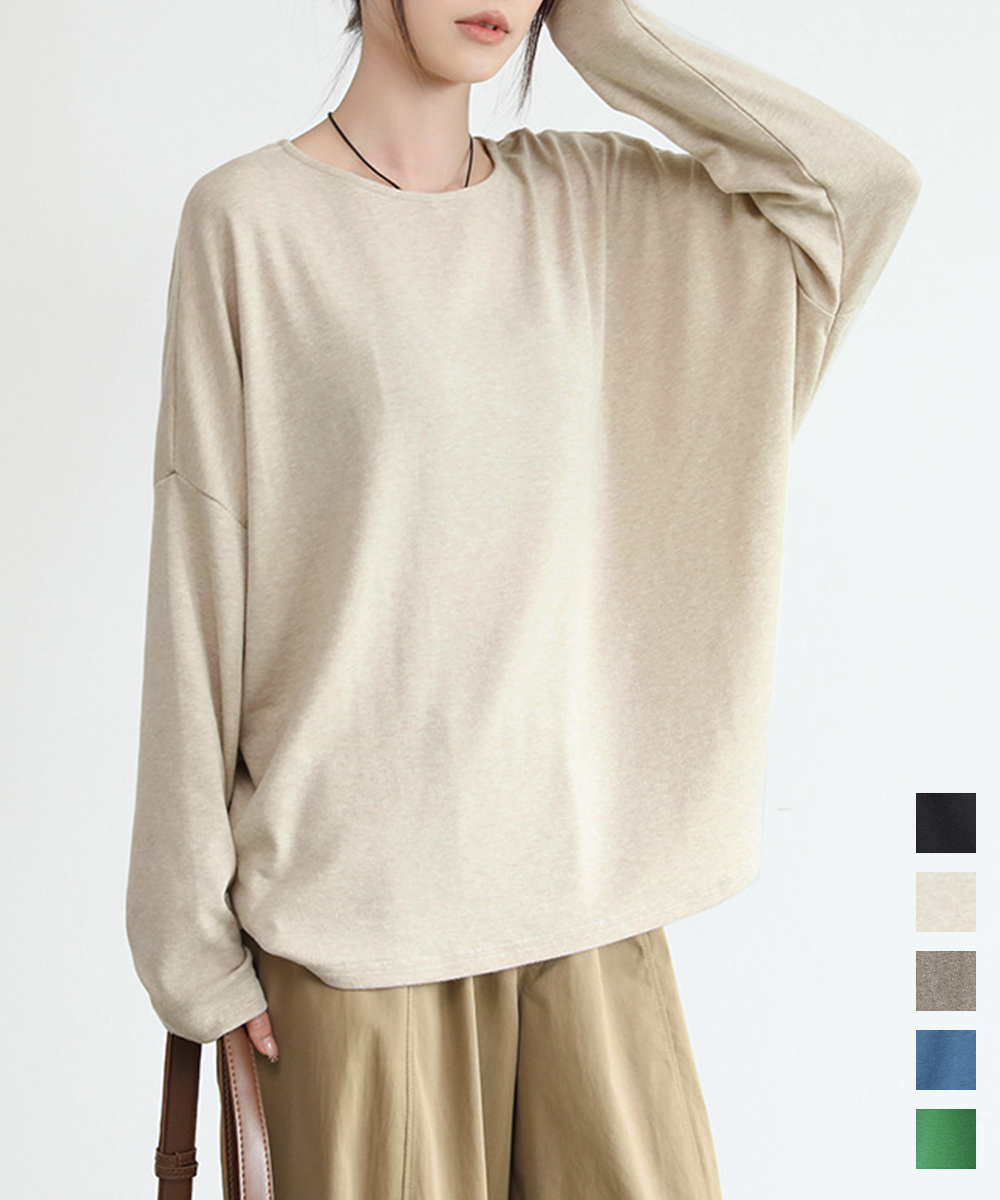 ゆったりとしたオーバーサイズティーシャツで、落ち感のある柔らかな素材が魅力の長袖カットソーです。