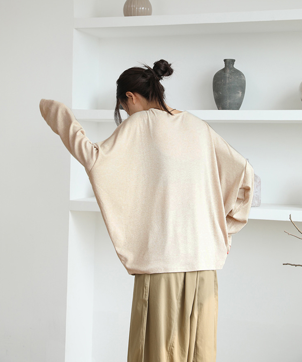ドロップショルダーのドルマンスリーブが体型をカバーし、こなれた抜け感を演出します。