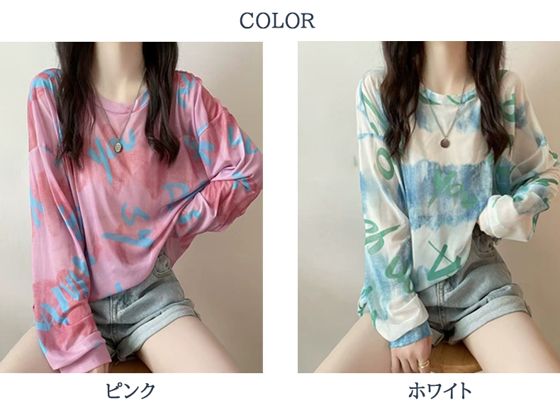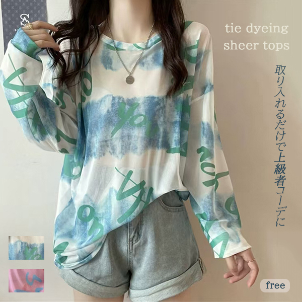 ■コメント ・取り入れるだけで上級者コーデになるポップな雰囲気のタイダイ総柄ロゴシアートップス。 ・ゆるっとルーズなオーバーサイズでボディラインを隠してくれます。 ・程よい肌見せが女性らしさと抜け感をプラス。 ・ドロップショルダーで腕周りを華奢見せしてくれます。 ・色んなボトムスと合わせてスタイルを楽しめます。 ■サイズ(単位:約cm) ワンサイズ バスト94 肩幅42 総丈42 袖丈58.5 ■カラー 画像に記載 ■伸縮性 なし ■裏地 なし ■生地の厚さ 薄手 ■透け感 あり ■素材 ポリエステル100%