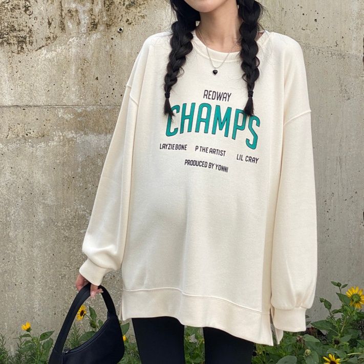 大きめの英字ロゴがアクセントになった、カジュアルで存在感のあるオーバーサイズTシャツです。 ゆったりとした身幅と長めの袖丈が体型カバーにもなり、リラックス感のある着こなしが楽しめます。 レディースらしい抜け感を演出できる万能アイテムで、黒のレギンスやスキニーパンツと合わせてバランスよく着こなせます。 普段使いにもお出かけにも活躍する、デイリーに使いやすい一枚です。